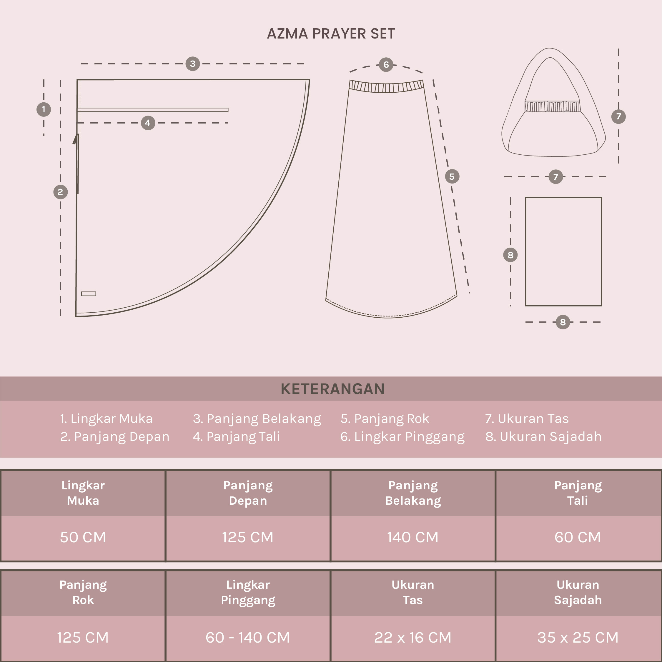 Prayer set dengan detail motif soft floral yang indah menggunakan bahan silk premium yang lembut, halus, ringan, dan jatuh indah saat dikenakan. Terdapat resleting dibagian muka, sehingga bisa 2in1. Rok mukena memiliki karet pinggang elastis sehingga bisa menyesuaikan berbagai bentuk tubuh dengan nyaman. Set ini juga dilengkapi tas mukena serta sajadah menjadikannya satu paket lengkap yang cantik, fungsional, dan cocok dijadikan pilihan pribadi atau pun hari raya.