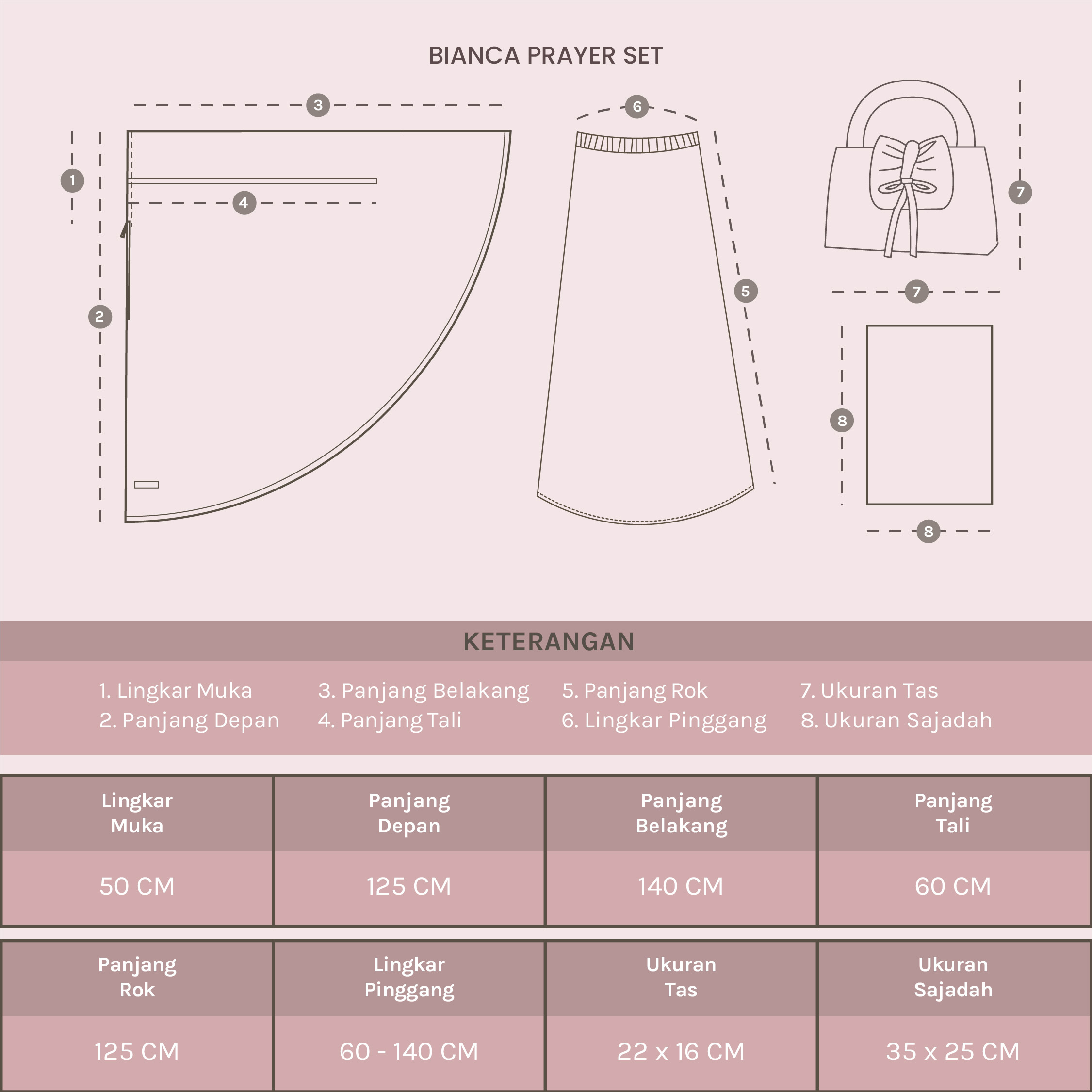 Bianca Prayer Embroidery Set dari Lozy x Bianca Kartika mukena elegan dengan desain embroidery floral dan material silk yang lembut, ringan, serta jatuh indah saat dikenakan. Kainnya terasa halus dan adem di kulit, memberikan kenyamanan optimal untuk digunakan dalam waktu lama, baik untuk ibadah harian maupun momen spesial seperti Hari Raya. Dilengkapi resleting di bagian depan yang fungsional sehingga dapat digunakan sebagai model 2in1 juga tali luar yang bisa diadjust sehingga bisa menyesuaikan bentuk muka. Rok mukena menggunakan karet pinggang elastis yang fleksibel dan nyaman menyesuaikan berbagai bentuk tubuh. Set ini juga dilengkapi tas mukena dan sajadah senada, menjadikannya satu paket lengkap yang praktis, cantik, dan cocok untuk koleksi pribadi maupun pilihan hadiah istimewa.